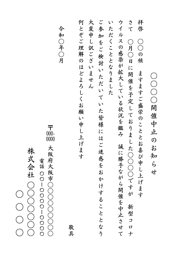 ○○○○開催中止のお知らせ