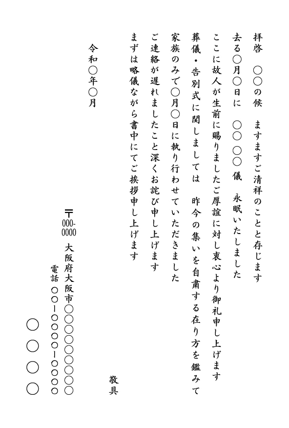 令和○年○月挨拶状イメージ