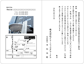 挨拶状にカラーの地図、カラーのロゴ、写真の挿入をご希望の場合は、挨拶状の基本料金に各種オプションの挿入費用とカラー印刷料金の追加が必要となります。
