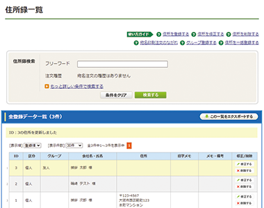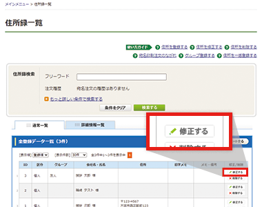 このページでは、住所録に登録した住所の修正方法をご説明します。