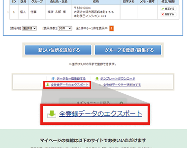 2.住所録一覧をエクスポートする