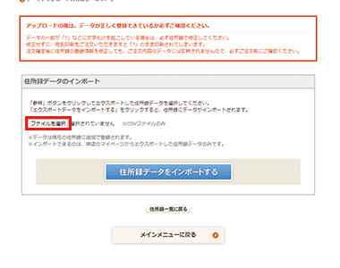 以下のリンクより、「住所録データのインポート」ページを開きます。