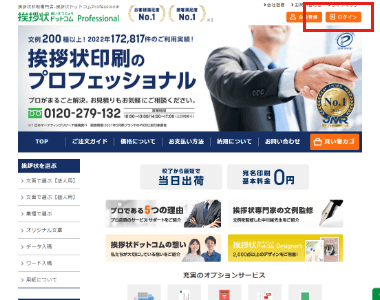 挨拶状ドットコムProfessionalサイトからのログイン方法