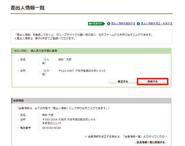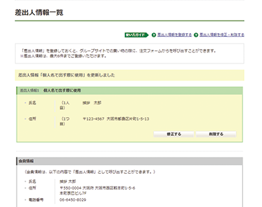 このページでは、差出人情報を修正・削除する方法について説明します。